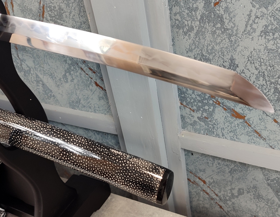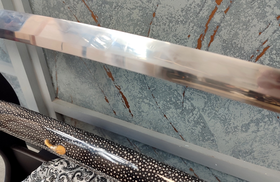 Nagasa: Čepel v shinogi-zukuri byla vykována v Soshu gitae z tamhagane. Díky tomu je tak čepel dostatečně tvrdá, ale současně i pružná a odolná proti zlomení. Při určitých úhlech pohledu je přechod mezi jednotlivými druhy oceli dobře viditelný. Hada je ve stylu Mu Ji, tedy okem téměř neznatelná.