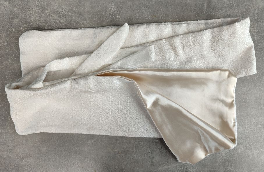 Je vyroben z brokátu vysoké gramáže (150-200g/m2), se saténovou podšívkou.