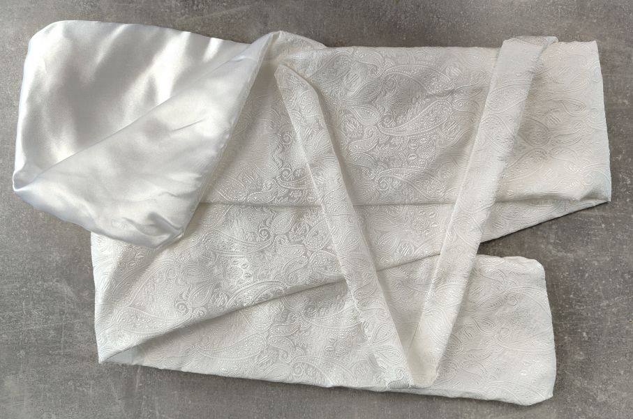 Je vyroben z brokátu vysoké gramáže (150-200g/m2), se saténovou podšívkou.