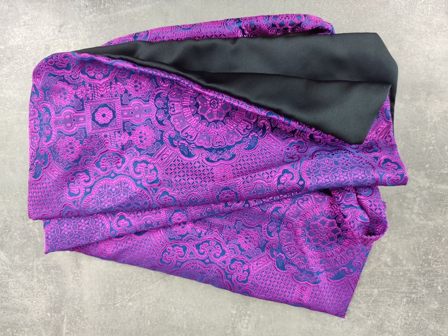 Je vyroben z brokátu vysoké gramáže (150-200g/m2), se saténovou podšívkou.