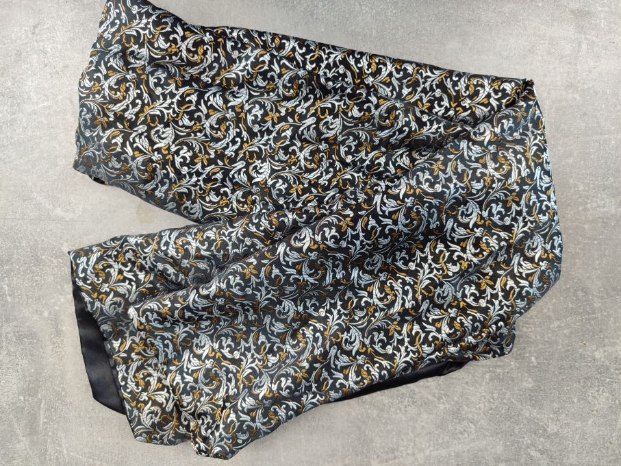 Je vyroben z brokátu vysoké gramáže (150-200g/m2), se saténovou podšívkou.
