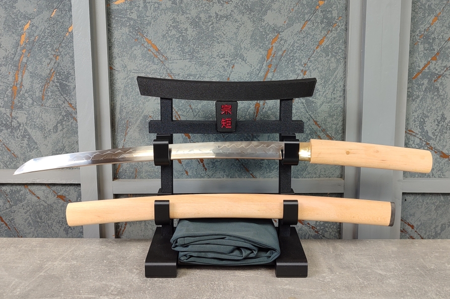 Munenori Shirasaya Wakizashi T10 steel hitacura hamon