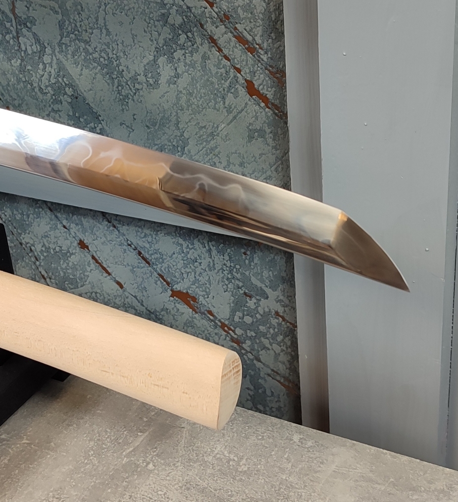 Nagasa: Masivní čepel značky Munenori byla byla vykována z wolframové oceli T10 v shinogi-zukuri a gitae maru. Má mírnou hiraniku a po celé její délce se táhne výrazná hamon vzniklá diferenciální kalením. Kissaki byl broušen a leštěn zvlášť, s výrazným yokote. Čepel je dodávána velmi ostře nabroušená s mosazným, leštěným habaki. Na nakago jsou gravírovány kanji pro Munenori.